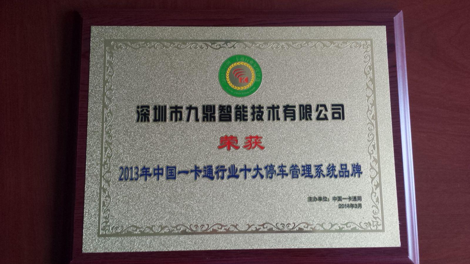 2013年中國一卡通行業(yè)十大停車管理系統(tǒng)品牌