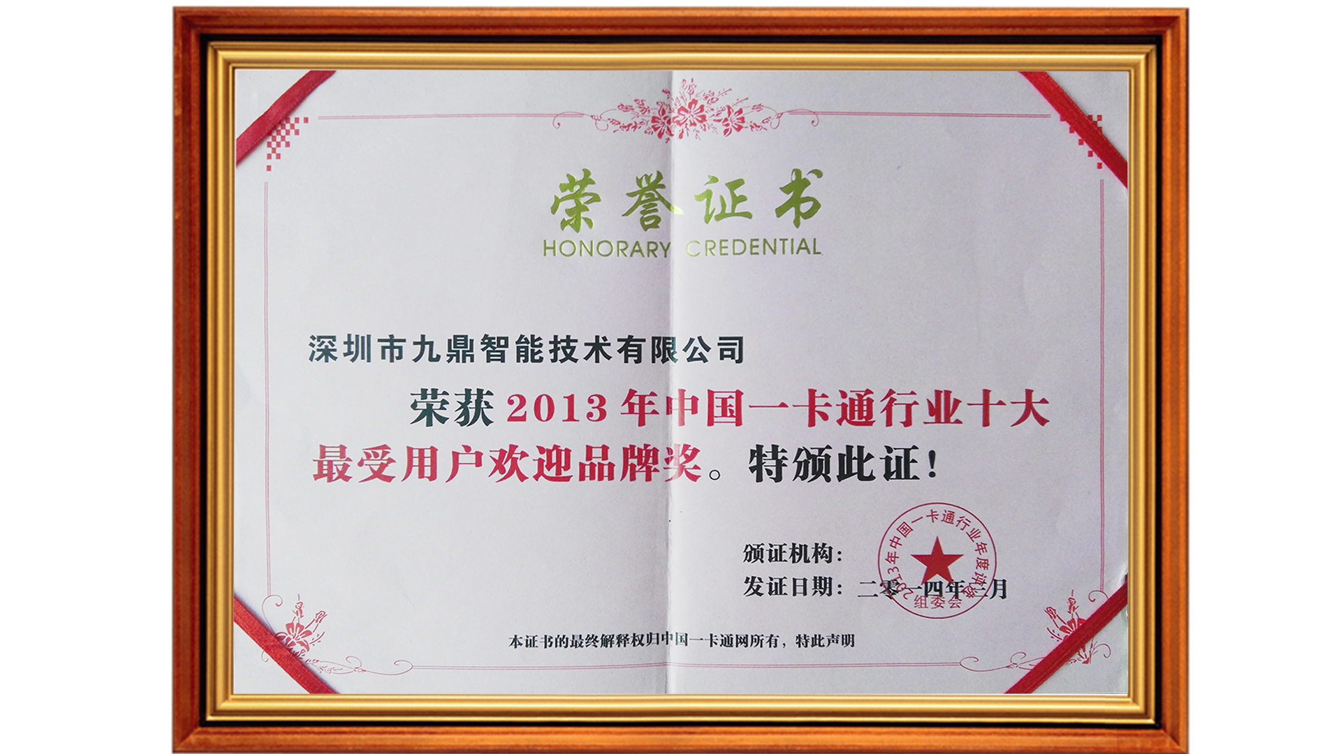 2013年中國(guó)一卡通行業(yè)十大最受用戶歡迎品牌獎(jiǎng)